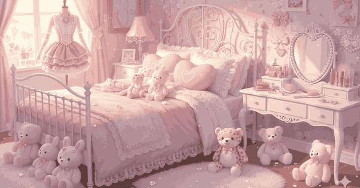 Think of it as a digital manifestation of a dream bedroom crossed with 2000s nostalgic femininity. Fans of Bratz meeting Sanrio with a drop of coquette glam will feel right at home.